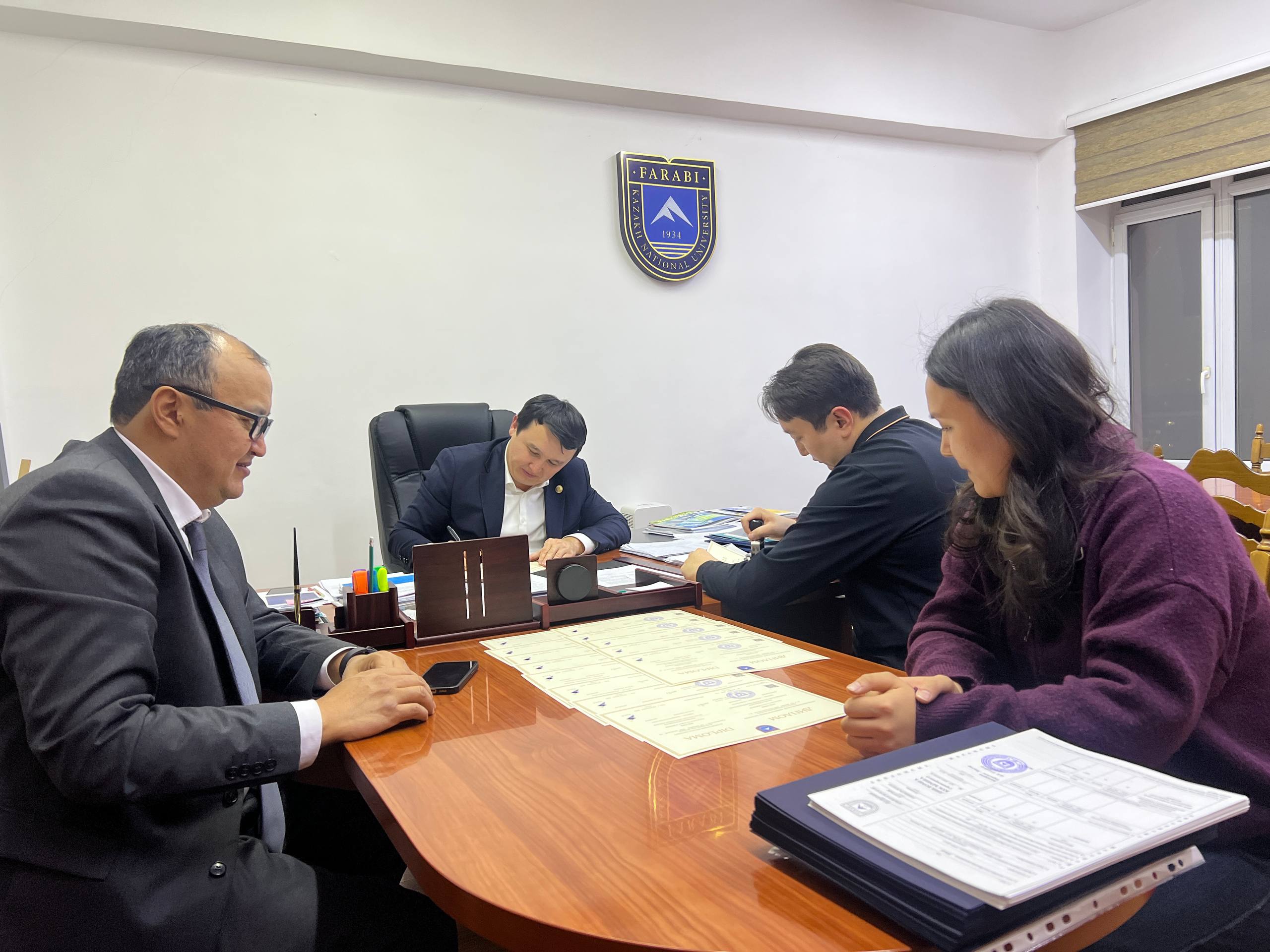 2026-жылдын 16-январы Бишкек шаарындагы аль-Фараби атындагы Казак улуттук университетинин филиалы үчүн чыныгы маанилүү жана тарыхый күн болду. Бул күнү башкы университетте — Алматы шаарындагы аль-Фараби атындагы КазУУда — «Билим берүүдөгү менеджмент» билим берүү программасы боюнча профилдик магистратурада билим алган магистранттарга эл аралык үлгүдөгү алгачкы дипломдорго кол коюлду.